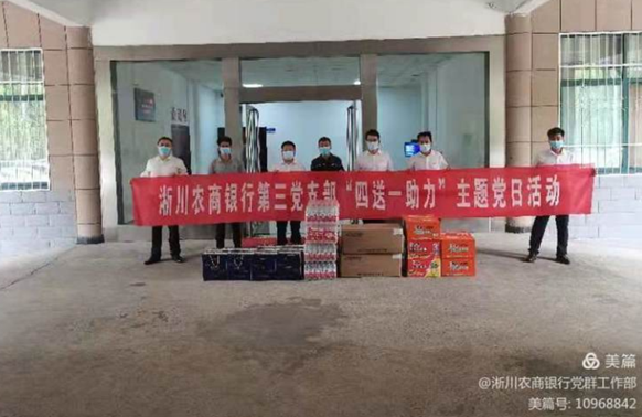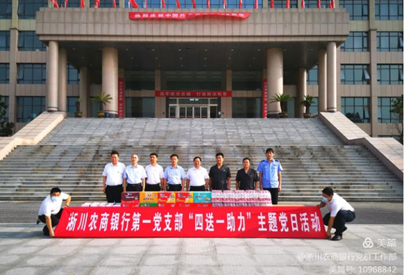 高度重视、周密安排。为扎实做好“四送一助力”专项行动,总行党委主要领导亲自安排、具体部署,要求相关部室牵头下发《淅川农商银行关于开展“四送一助力”专项行动的通知》,明确活动对象、活动时间、活动内容、活动要求,并配套向各基层党支部划拨专项党费,用于开展“四送一助力”专项行动,真正发挥好淅川农商银行作为省级文明单位、全省农信社系统2021年唯一荣获“河南省五一劳动奖”荣誉单位的示范引领作用。 带头行动、走访慰问。总行党委班子成员带着口罩、矿泉水、方便面、牛奶等慰问品上门走访相关单位,对战斗在一线的防疫工作者表示慰问,感谢县委政府各单位多年来对淅川农商银行工作的大力支持、真诚帮助,并向相关单位负责同志通报了淅川农商银行今年以来各项重点工作开展情况、有关工作推进进度,还结合党史学习教育“我为群众办实事”实践活动征求了对农商银行工作的意见建议。