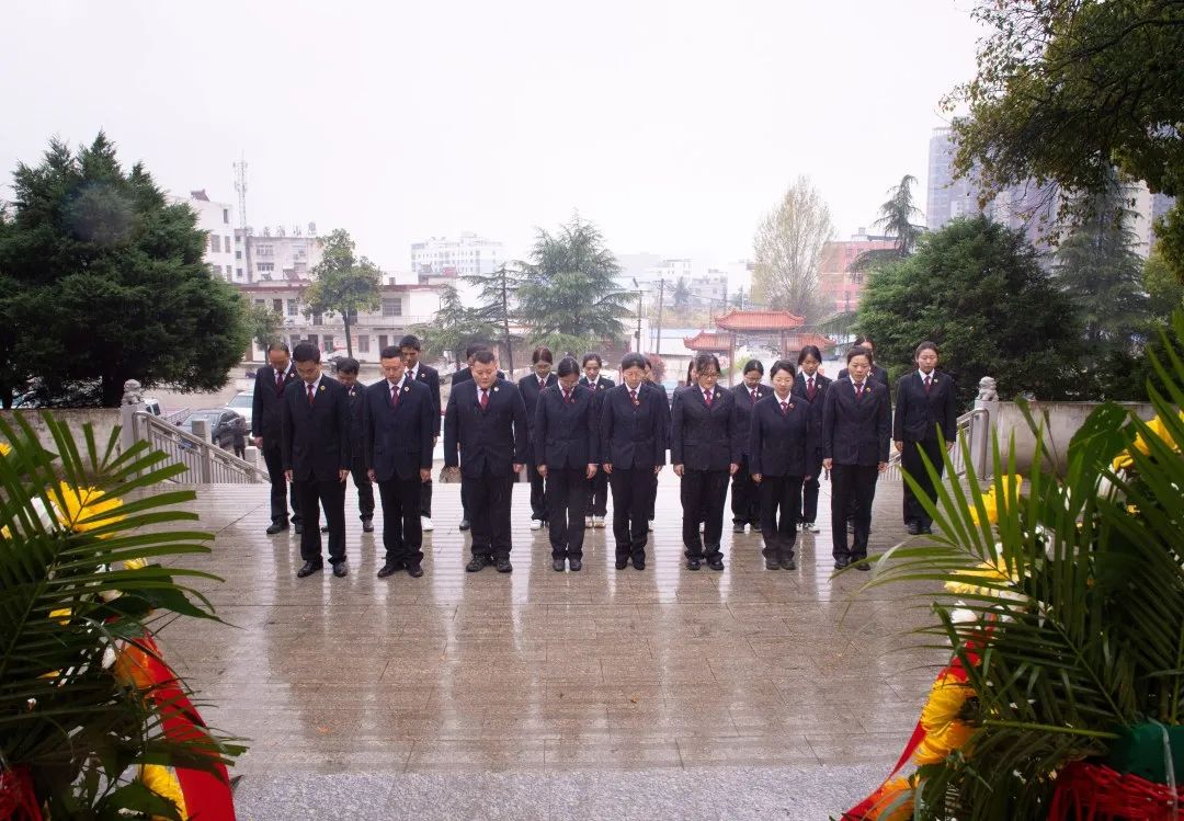在淅川革命烈士纪念碑前,干警们集体向长眠于此的革命烈士敬献花篮并列队默哀,表达对革命先辈的深切悼念和崇敬之情。