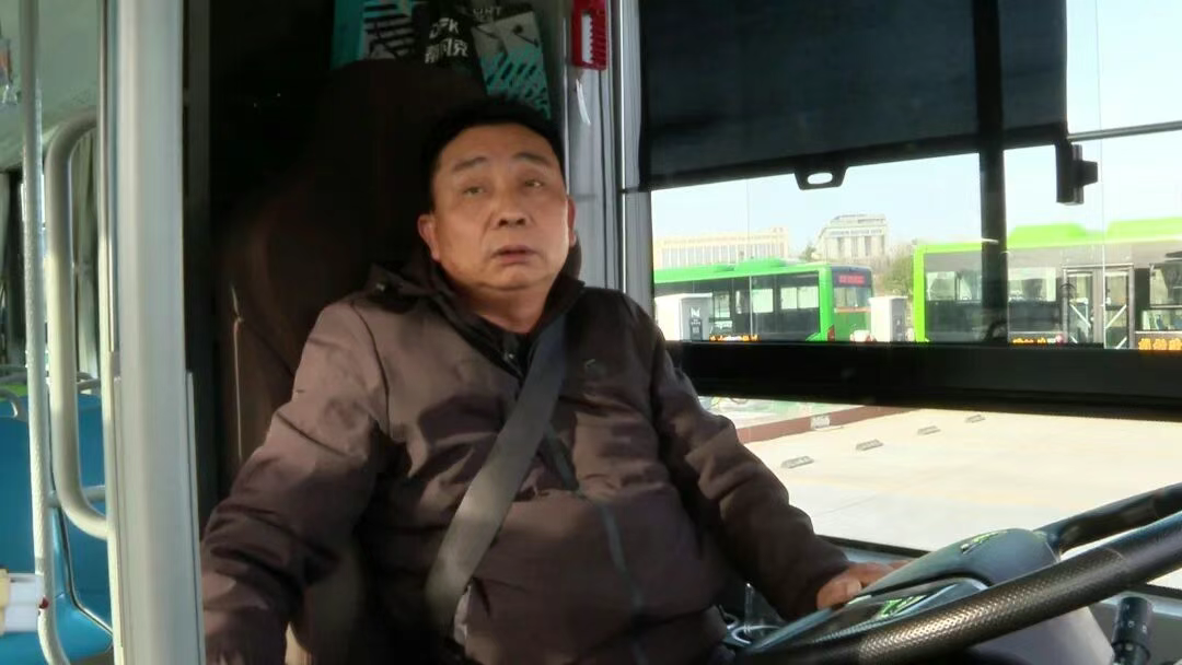 “驾驶员 李红江:这个新能源公交车,操纵很便捷,舒适度也很高。安装防护门和全车监控也给驾驶员和乘客起到了保护的作用。”