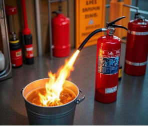在安全的前提下,我们使用灭火器或锅盖等工具科学扑救。