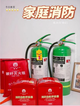 家用灭火器要确保在有效期内且压力正常,烟感报警器功能正常,防烟面罩可以正常地使用。