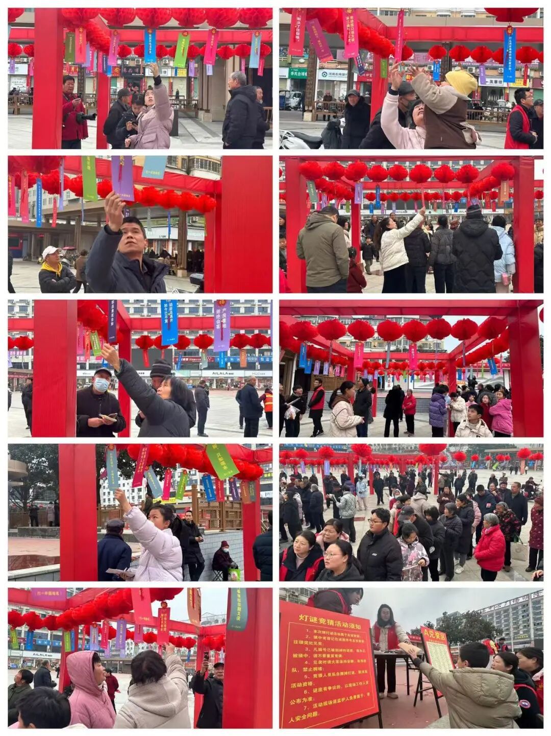 今天上午九点,由淅川县文广旅局主办,县图书馆与文化馆承办的元宵节灯谜活动,在中心文化广场温情启幕,为全县市民奉上了一场集知识性、趣味性、文化性于一体的元宵盛宴。一大早,广场的灯谜活动区就已布置一新,红彤彤的灯笼高高挂起,五彩斑斓的灯谜纸条随风摇曳,喜庆氛围拉满,闻讯而来的市民络绎不绝,老老少少齐聚一堂,迫不及待地加入到猜灯谜的行列中。